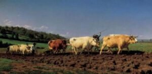 Labourage en Nivernais, Rosa Bonheur, 1848. Le bœuf de race Morvandelle est le troisième enpartant de la droite, au premier plan.