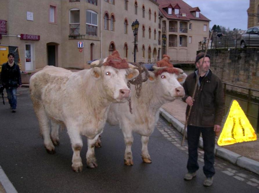 Laurent Billoux a participé au tournage à Charolles, avec son attelage constitué de Froment et d’Azalée, un attelage mixte boeuf/vache.