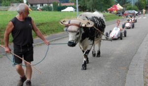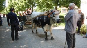 André Kammerer nous communique quelques photos de son boeuf au travail chez lui ou dans des manifestations auxquelles il a participé avec Grivé son boeuf Vosgien.