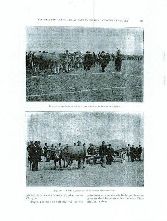 Voici un document ancien communiqué par Laurent Avon tiré du « Journal d’agriculture pratique » du premier semestre 1907, consacré aux boeufs de travail Aubracs au concours de Rodez.