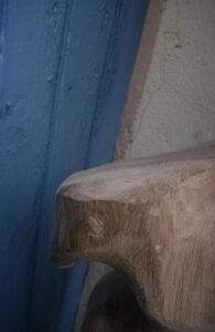 Par sécurité, au niveau des parties les plus fragile aux fortes découpes comme le bas des passages de liens ou le haut des logements des cornes, des chevilles collées en force sont positionnées afin d’éviter, sur un choc, la rupture sur le fil du bois.