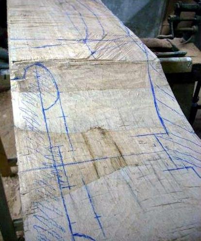 Outre le fait que les formes sont fortes et épaisses, le joug de bœuf à réaliser, présente contrairement au joug Charollais, la particularité d’avoir les têtières positionnées selon des angles aussi bien dans sa longueur que dans sa vue de face.
