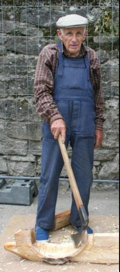 L’explication de cette gaité, de cet enthousiasme, est peut-être la suivante : il savait que ce travail tantôt autonome, tantôt collectif, correspondait au niveau de vie qu’ils avaient. Et puis, sortant de sa bouche, le mot travail n’avait pas tout à fait le sens habituel, qui dans notre civilisation de souche judéo-chrétienne, n’a toujours pas vraiment perdu le sens de ses origines latines, à savoir : tripalium. Pour lui, le travail, c’était l’occupation qui permet de vivre, simplement. L’Œuvre en fait ; que ce soit cultiver la terre, récolter, soigner lapins et volailles, transformer, bricoler … et bien sûr tailler des jougs. Chose qu’il fit, si je ne me trompe pas, jusqu’à l’hiver où il fêta ses 88 ans. Il avait encore la souplesse et la force juste nécessaires, la technique faisait le reste.