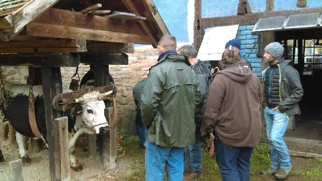 Merci à Laurent Martin de nous communiquer des images de la formation traction bovine encadrée par Philippe Kuhlmann qui se déroule durant toute cette semaine (6 au 10 novembre 2017) à l’écomusée d’Alsace.