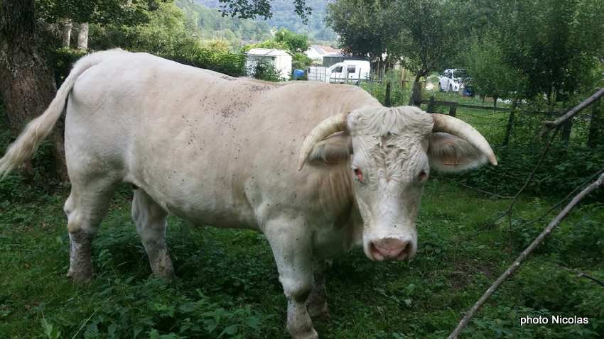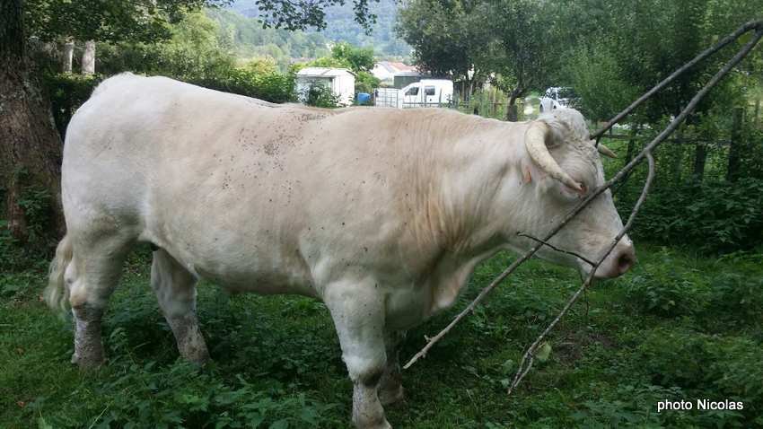 Un boeuf Charollais de 3 ans et demi, gentil, docile mais non dressé est à vendre dans le Doubs.