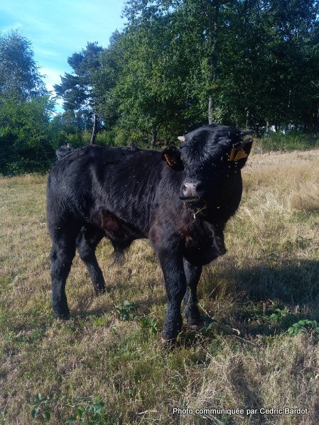 À vendre veau Salers noir issu de l’insémination de conservation Salers noir, né en janvier 2024, non manipulé mais docile car la mère (Salers acajou ) marche au licol.