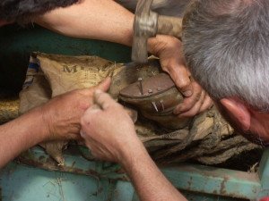 Le ferrage des onglons avant extérieurs qui sont ceux qui forcent et usent le plus en travaillant, a permis d’avoir une marche plus confortable pour les bêtes.