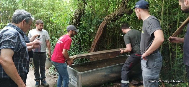 Après avoir emprunté les routes sinueuses des Vosges, nous arrivons chez Philippe où d’autres bouviers sont présents. Ce sont les journées « les Bovins d’abord ». Ces journées qui se déroulent sur 4 jours sont organisées par Philippe et Christine sur la ferme de Philippe. Elles permettent aux bouviers de France de se rencontrer et d’échanger sur les différentes pratiques et travaux de chacun. C’est très enrichissant pédagogiquement et socialement.