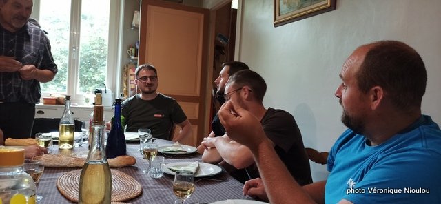 Le véhicule chargé, 11h30 nous voila parti pour traverser la France direction Mâcon en Saône et Loire. Le trajet va être long mais il se fera dans la joie et la bonne humeur. Les premiers remontants et les musiques campagnardes nous accompagnent jusqu’à notre première halte tant attendue par certains. Quelques kilomètres plus tard les ventres gargouillent mais les aires de repos sont remplies, il va falloir attendre. Cinq aires de repos plus tard, enfin nous trouvons notre lieu de pique nique, un sous bois calme et verdoyant, idéal pour sortir notre petit barbecue et nos viandes. Les batteries rechargées nous parcourons les grandes plaines françaises jusqu’à Mâcon où nous arrivons à notre hôtel. Nous déchargeons les valises rapidement pour aller chez Michel NIOULOU.