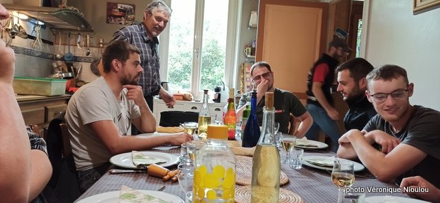 Premier jour d’un long weekend, le grand jour est arrivé pour nos bouviers puyfolais. Rendez-vous à la Menanterie pour le traditionnel café du matin. Les retardataires habituels sont à l’heure voir en avance, première historique, malgré des petits yeux chez certains. Le café fait du bien, les premières expressions commencent à se faire entendre : “le weekend de l’ascension est un weekend de 4 jougs (parole de bouvier)”. Les pains au chocolat savourés et le café avalé, il est l’heure de charger le véhicule. En voyant le nombre de sacs et les glacières, les premières questions se posent : le véhicule sera-t-il assez grand ? Qui a le repas de midi ? Où sont les planches à palets et les brioches ?
