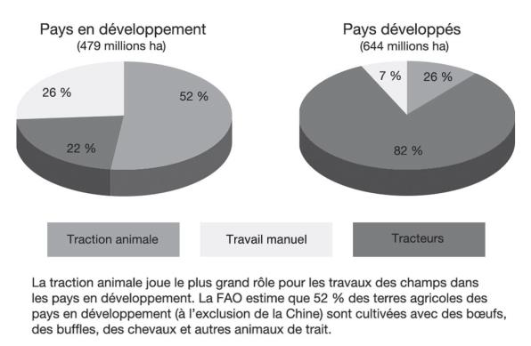 celle enfin de pays moins avancés où la traction animale est encore d’actualité et présente même souvent des solutions d’avenir pour les petites exploitations agricoles, encore majoritairement en travail manuel. [5]