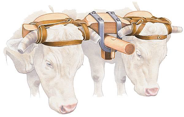 Les jougs de nuque nécessitent des bovins pourvus de cornes solides, de préférence orienté vers le haut et vers l’avant. [11]