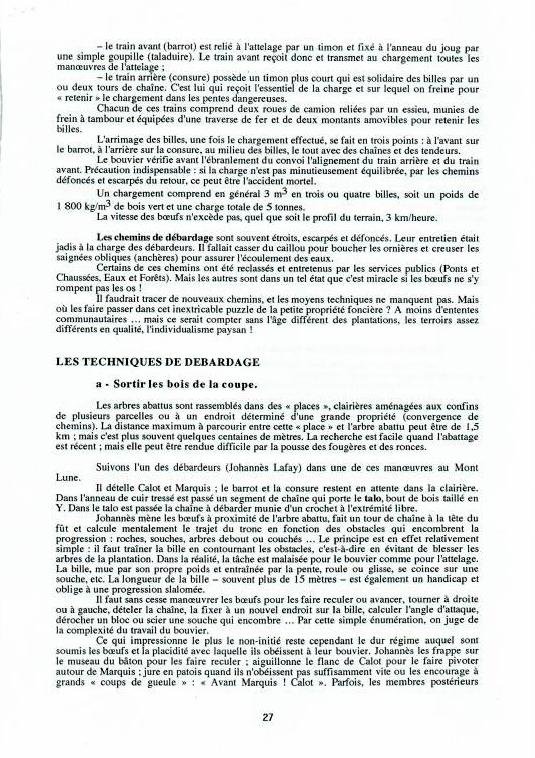 Dans la seconde partie, Philippe Kuhlmann et la même paire, huit mois plus tard, sort à la traîne et au trinqueballe, des bois de grosses sections, avec, en particulier, à la fin du film, un frêne spectaculaire.