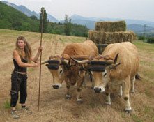 Parallèlement, j’ai remonté un troupeau de bovins et actuellement ce sont 3 à 5 paires de bœufs, taureaux et vaches qui réalisent les travaux de la ferme, 35 ha de prairies dont 28 fauchées. Une estive de 20 ha permet d’élever les jeunes bêtes, génisses et bouvillons.