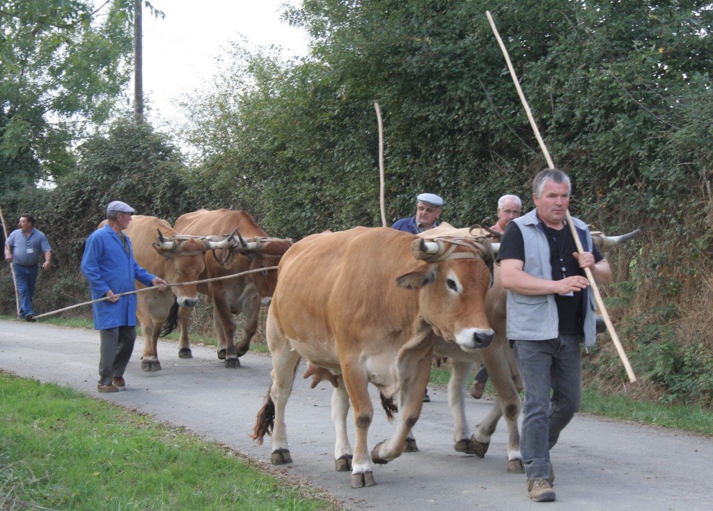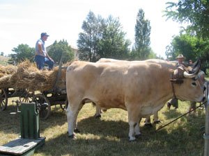 A « Méras » on croise toujours mûles, bœufs et chevaux au travail dans la vie quotidienne. En ce moment, les bœufs sont suisses et une autre paire de gascons est en cours de dressage.