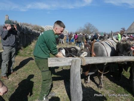 Claus Kropp est depuis longtemps membre de l’EXARC (musées de plein air d’archéologie expérimentale), donc la première tranche de communications était consacrée aux archéo-ostéologues. En fait, il y avait un tel afflux de propositions pour toutes les séances, qu’une partie d’entre elles a dû avoir lieu éventuellement l’utilisation de posters dans le foyer du musée, toujours consacrés à la traction bovine ou au bien- être des animaux : la préparation de mortier de construction, le maraîchage au Canada, la production laitière plus humaine, surtout la préservation des savoir-faire des bouviers de par le monde et tant d’autres. La diversité des intervenants était particulièrement impressionnante : un photographe professionnel roumain qui consacre son travail à la vie traditionnelle en voie de disparition ou un ingénieur ougandais qui a fondé une association pour promouvoir le bien-être animal et humain par l’utilisation d’instruments de labour plus ergonomiques, à côté de pratiques agricoles plus soutenables.