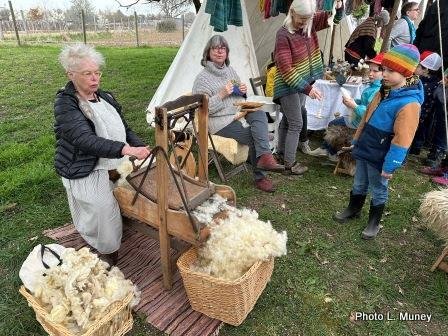 Démonstrations par les bénévoles du musée de toute la chaîne de production des textiles en laine (Photo L. Muney)