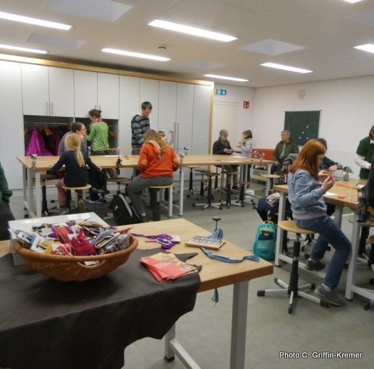 L’atelier pour enfants de tissage à tablettes dans le centre multi-activités de Lauresham (Photo C. Griffin-Kremer)
