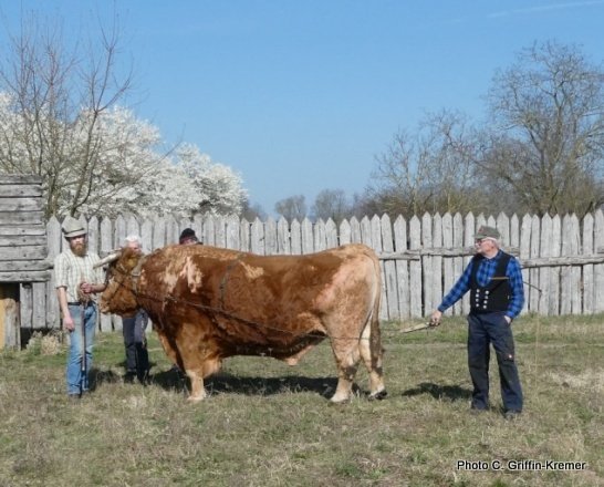 Lauresham utilise toute une étable de Gris Rhétiques ainsi qu’une paire de Vosgiennes et des Rotvieh (Rouges). Le Groupe de Travail Attelage Bovin allemand a amené des Gris supplémentaires, une course aujourd’hui promue pour le triple usage (lait, viande, traction). xiii Ils ont travaillé tout à côté du stand pour la promotion de la race xiv et celui du GEH, le groupement allemand dédié à la conservation des courses à petits effectifs en général. XV