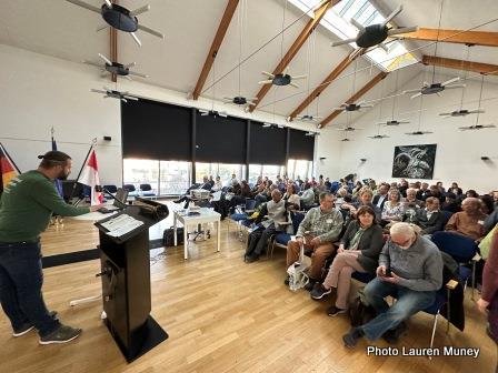 Les premiers participants arrivés rassemblés autour d’une des vedettes du congrès (Photo L. Muney)