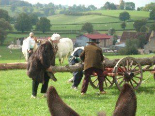 Une fois arrivés, nous avons fait des démonstrations de chargements et de déchargements de grumes à la roule avec les vaches.
