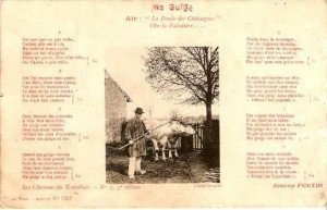 Heureusement, d’autres bouviers chantaient. Il s’agissait de chants improvisés qui parfois n’étaient que de simples vocalises, et parfois un mélange de paroles et de vocalises. Bien entendu, ceux qui étaient dotés d’une belle voix en profitaient pour se faire entendre, et l’inspiration du moment leur dictait certaines paroles qui, suivant les circonstances, revenaient ou variaient souvent. Et comme les champs cultivés n’étaient pas très loin les uns des autres, il y avait parfois de l’un à l’autre de véritables concours de chants bucoliques…. Ces moments pouvaient être d’une beauté qui, hélas, ne se retrouvera plus.