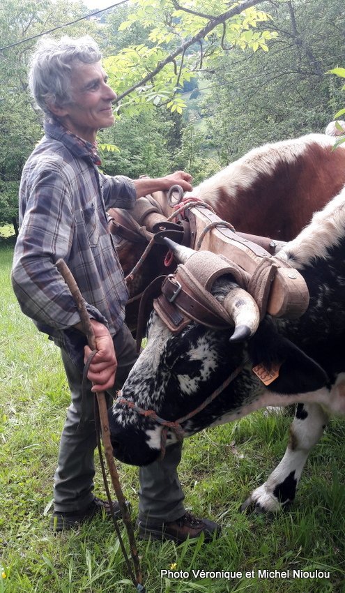 - Travail de débourrage sur ces jeunes animaux au collier, au jouguet, au joug double… sur différents travaux: bois, travail du sol…