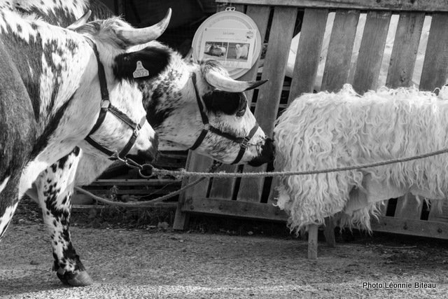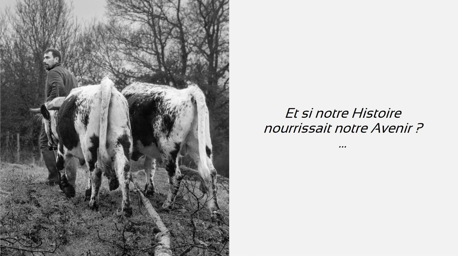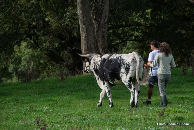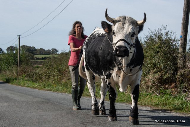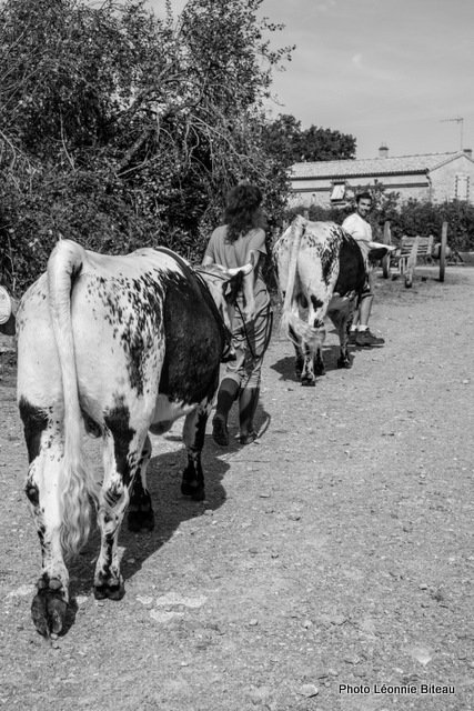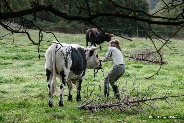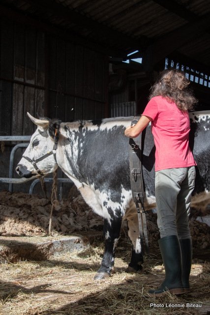 Astrid Masson a également montré des photos des débuts naïfs de son travail avec des vaches et des bœufs, allant de 2006 à aujourd’hui sur le Domaine de Dahlem et à la ferme d’Auenhof à Pabstthum, où elle utilise des Pies Noires Allemandes (Niederungsrinder) et des Vogelsberger (Rotes Höhenvieh).