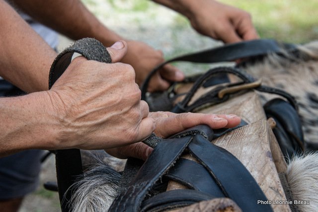 Tout d’abord, les animaux s’en sont approchés avec précaution, puis les ont reniflés de long en large, et ont fini par les juger si inoffensifs qu’ils pouvaient les lécher. Justement, il faut permettre aux animaux à bien prendre le temps d’examiner les objets, par exemple lorsqu’ils sont censés les tirer pour la toute première fois, et avant de les y atteler.
