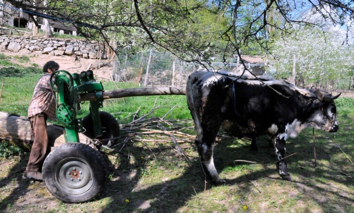 La traction animale commence à revenir à la mode mais reste souvent un acte militant. Le rejet des moteurs et des grosses machines, c’est aussi ce qui motive les associés de Fumeterre, une ferme alternative en Haute-Loire, qui est allé jusqu’à remettre en service un attelage surprenant : 2 vaches. « C’est plutôt un char d’assaut » commente Mickaël Bojados, « pour tourner, il faut en faire reculer une et faire avancer l’autre, comme des chenilles ».