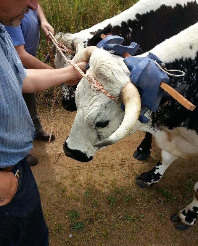Elle a été mise en oeuvre au labour avec un brabant. De la tête de l’attelage à la charrue se succédaient, la paire de boeuf Vosgiens d’Emmanuel Fleurentdidier, la paire de vaches Béarnaises de Pierre Nabos, la paire de vaches Nantaises de Jean-Marc Chauveau, la paire de boeufs Nantais de Jean-Bernard Huon et sa paire de Pie-Noire Bretons.