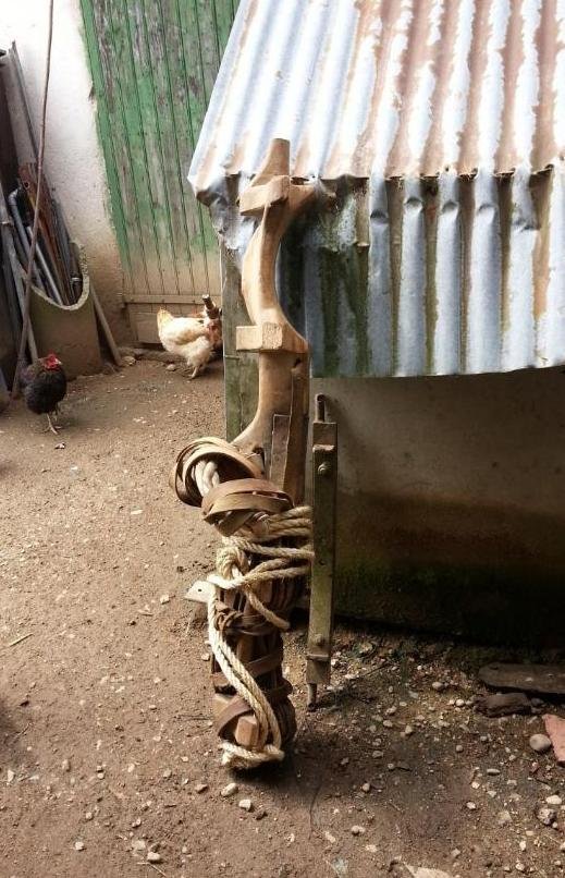 Outre le travail en paire qu’il a mis en oeuvre sur différents matériels et en débardage, Manu Fleurentdidier ainsi que son jeune fils Emile, bouvier depuis l’enfance, a aussi travaillé avec ses boeufs attelés en solo en sarclage, petit labour et buttage avec, entre autre, « la Forcat », un petit porte-outil espagnol à brancards, simple et léger, idéal en maraîchage.