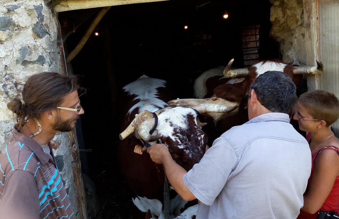 Bien qu’ils soient venus sans animaux, la présence de bouviers référents comme Philippe Kuhlmann du Haut-Rhin ou Joël Blanc de l’Aveyron, tous les deux paysans utilisateurs de la traction bovine et de Francis Bazerque de Haute-Garonne (Cliquez ici pour voir), bouviers utilisateurs de vaches Lourdaises, a permis aussi d’échanger avec eux autour de la traction animale, en particulier lors des « causeries ».