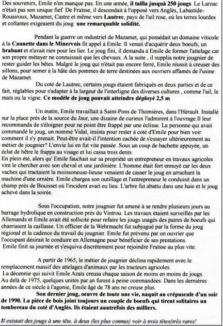 Document extrait du livre d’Alain Robert , Centre de Recherche de Rieumontagné, communiqué par Nadia Pardigon. Elle habite et travaille dans la ferme d’un ancien jougtier à Fraïsse-sur-Agout, qui fabriquait à peu près 300 jougs par an.