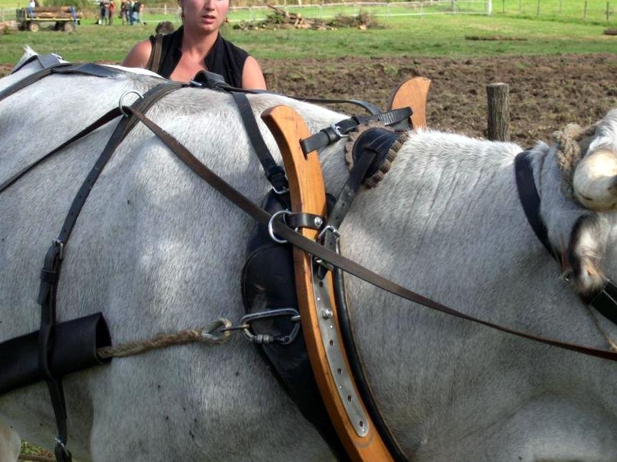 Un harnais est un dispositif monté sur un animal qui permet de transmettre sa puissance, générant ainsi une sortie de travail. Pour répondre aux exigences de traction, les caractéristiques d’un bon harnais sont: un bon angle de traction, de pression, la position de travail et de surface poids.