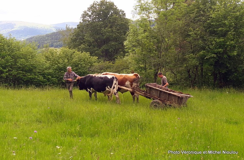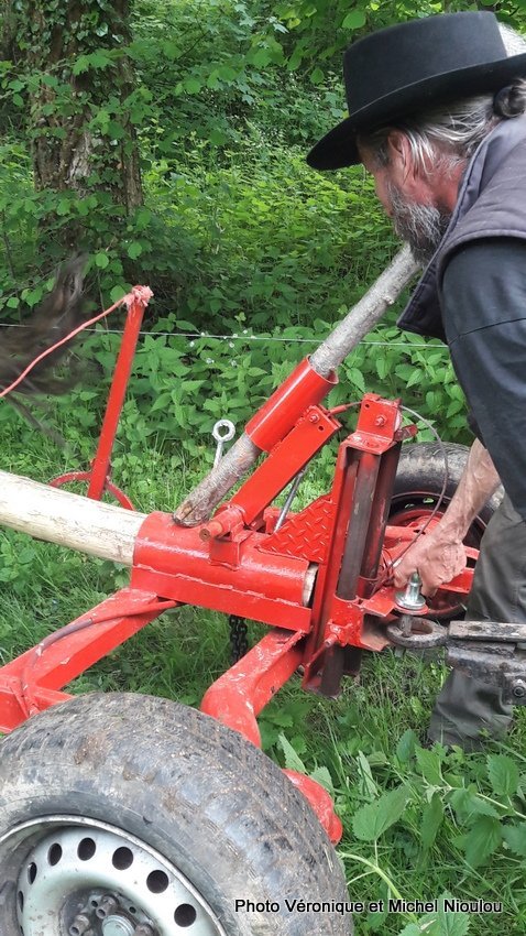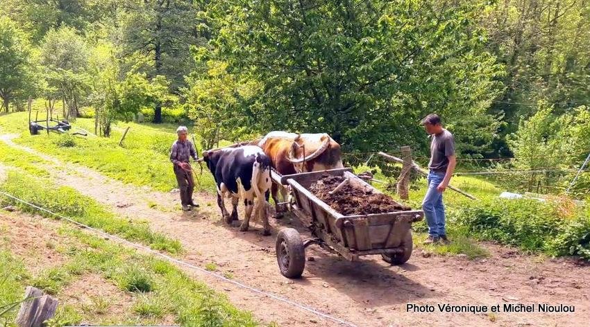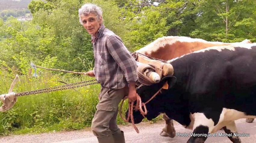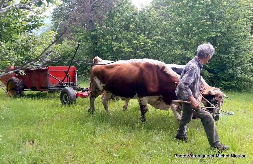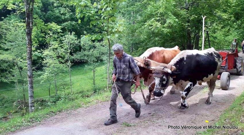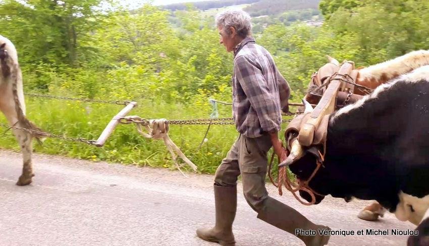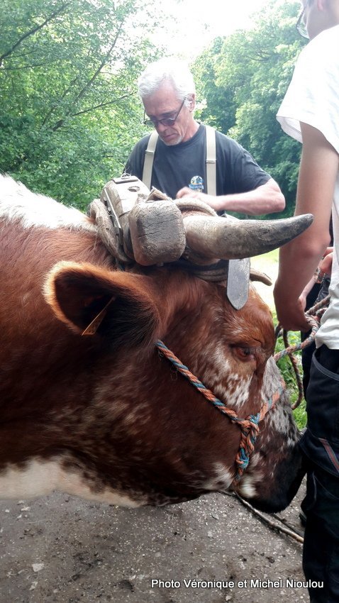 Au retour d’une des sorties en forêt, Philippe essaie un attelage à trois pour montrer comment régler les chaînes de façon à assurer que le vieux bœuf de devant ne se sente pas totalement en vacances et assume sa part de la charge. C’est un bœuf, d’ailleurs, qui aurait dû partir depuis longtemps à l’abattoir, mais que Philippe garde en tant qu’expert « enseignant » pour les plus jeunes bêtes.