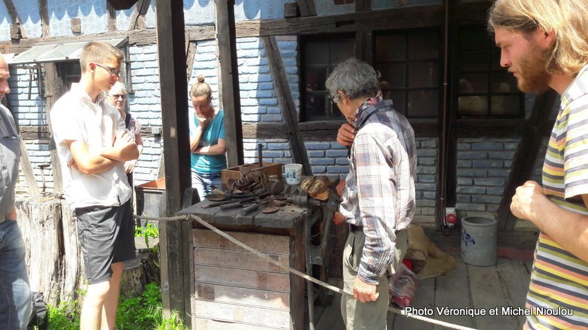 9 – Le projet du timon à roulette, Philippe et les forgerons avec Nicole Bochet, Photo CGK