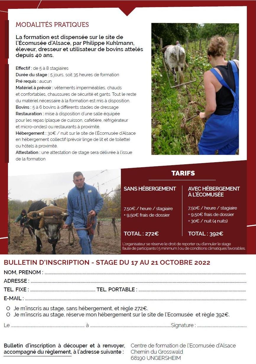 Au moment du départ, nous pensons au mot d’ordre « les bœufs d’abord » qui n’exclut en rien toute la diversité de l’énergie animale, mais rappelle – comme la chanson du même nom – que l’art rupestre de la préhistoire européenne montre les bovins comme les premiers partenaires de travail des champs de l’être humain. L’enthousiasme pour la transmission dont la réunion à Soultzeren a fourni la preuve, nous permet de tourner nos regards résolument vers l’avenir et de nous inspirer du mot d’un des participants : « Le passé instruit l’avenir, c’est l’avenir qui est important. »