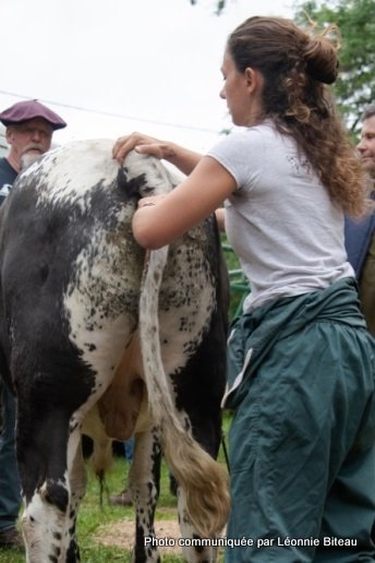 Après la traite matinale à la main dans son étable, Philippe accueille les premiers participants de la journée du jeudi. Tous se présentent et expliquent les raisons très diverses de leur intérêt pour les bovins de travail. Nombre d’entre eux viennent, comme la vétérinaire suisse, pour rencontrer Pauline Ernewein, l’ostéopathe animalière. Grande habituée des chevaux, Pauline relève avec fougue le défi d’aborder les bovins. Elle commence donc à démontrer le savoir-faire des ostéopathes professionnels pour traiter les animaux, ici les bovins, attentive à tout signe d’inconfort ressenti par l’animal, comme de ne pas bien équilibrer son rythme de marche entre le côté gauche et le côté droit. Un tel bœuf est pour ainsi dire « perdu dans ses pattes » et il faut savoir où le masser pour corriger ce déséquilibre.