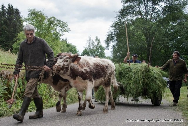Ainsi, avant même d’arriver à destination, d’anciens et de nouveaux participants se rencontrent, renouant une fois de plus avec ce faisceau de contacts qui composent le réseau des bouviers : agriculteurs et éleveurs locaux spécialisés dans les Vosgiennes et éleveurs d’autres régions qui protègent et affinent leurs souches génétiques à double usage (viande et lait), comme pour la Ferrandaise. Philippe semble être le seul éleveur de France à avoir conservé son cheptel destiné à la triple utilisation (viande-lait-énergie).