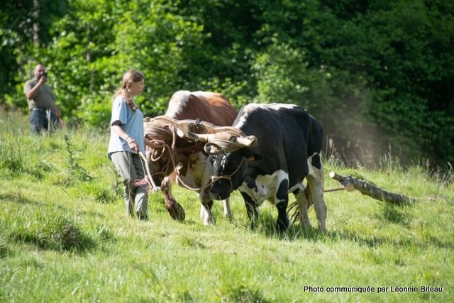 Le groupe de jeunes bouviers vendéens prouve qu’ils aiment chanter, mais ils prennent également le micro pour rendre compte de leur stage chez Michel Nioulou, pilote du blog « Attelages Bovins Aujourd’hui » et jougtier expérimenté. Très naturellement, le ludique se marie avec le pédagogique. Il y a des activités comme la démonstration de fauchage et d’andainage traditionnels sur la pente – une association de travaux intimement liés avec la traction bovine. Christine Arbeit, pilote du groupe Facebook des bouviers, informe régulièrement tout le réseau français des faucheurs sur les événements associés à l’attelage de bœufs, pour encourager tout le réseau de métiers essentiel à l’utilisation de la traction animale.
