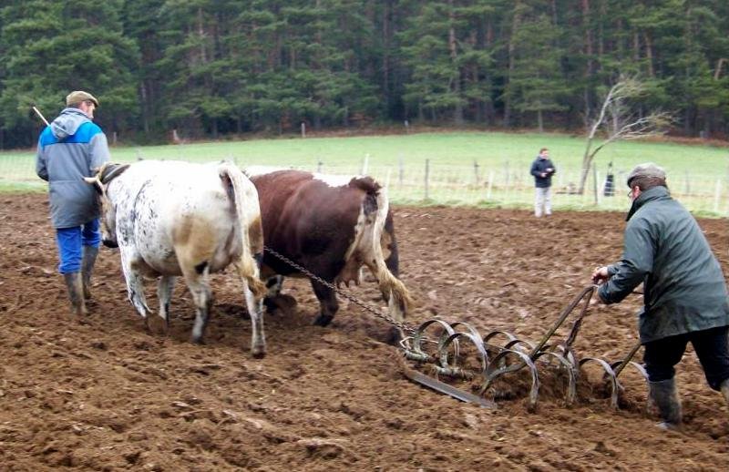 J’ai 69 ans, et j’ai travaillé avec une paire de boeufs Aubrac (Murat et Muscat). Je passais le rouleau, la herse et faisais le transport du fumier. C’était la plus belle paire de boeufs de la foire de la Saint-André au Puy-en-Velay en 1951.