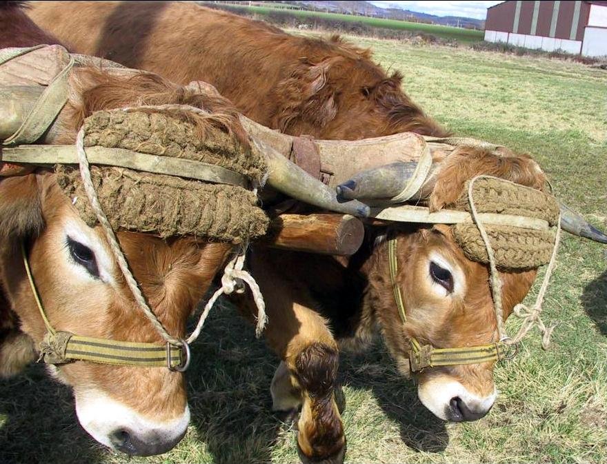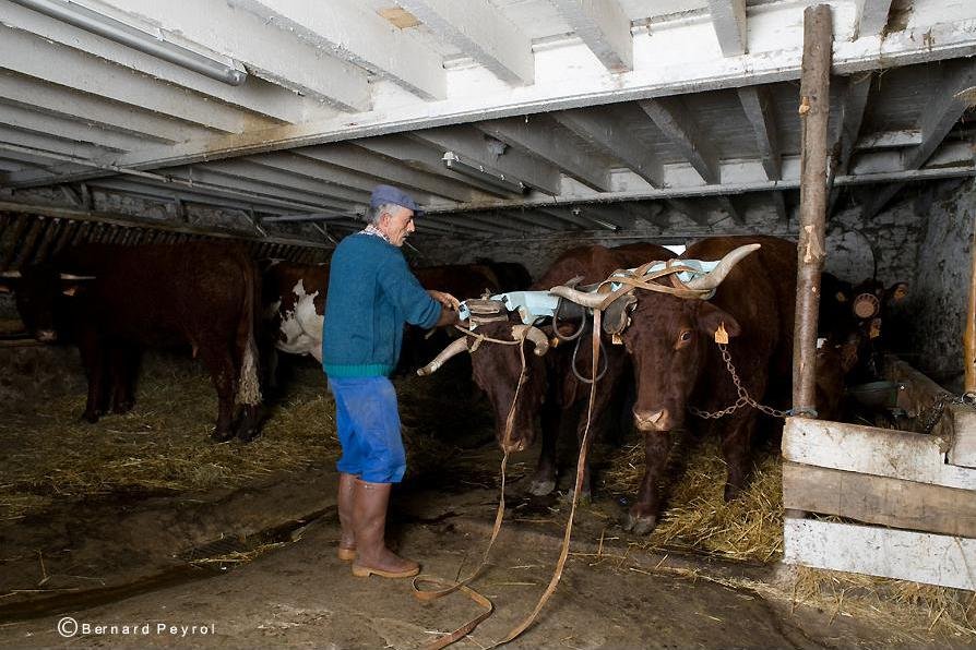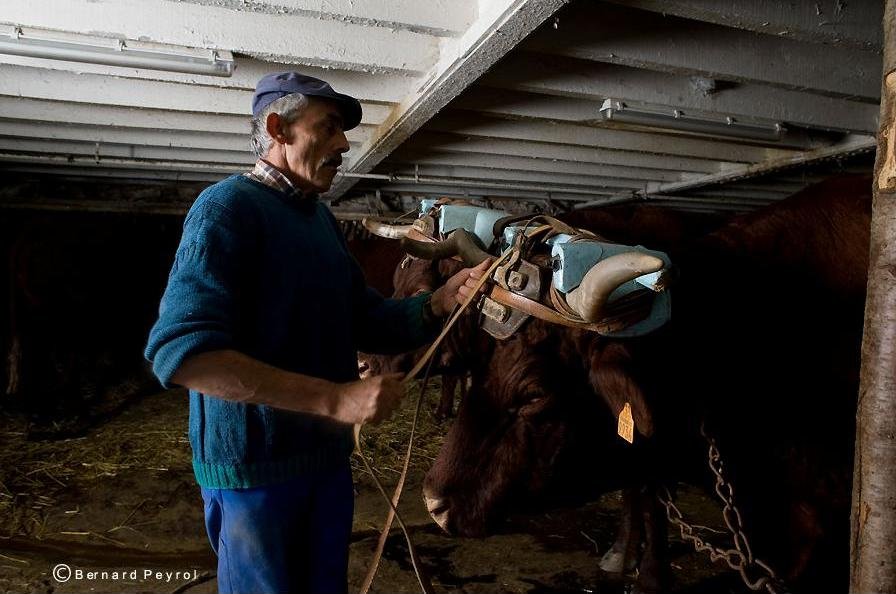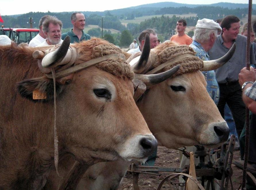 Dans notre région, les attelages de boeufs étaient presque tous des Aubracs, un peu plus lents que les Salers, mais plus résistants à la chaleur.
