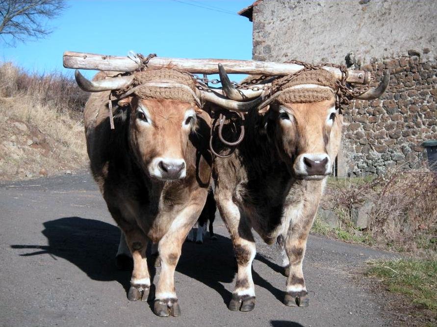 A contrario des vaches, les boeufs s’achetaient dressés. Ils venaient pour la plupart (à pieds!!) de Lozère, de l’Aveyron ou du Cantal.
