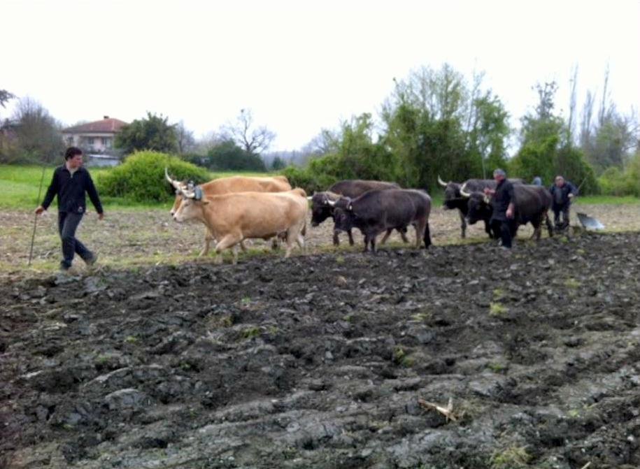 En septembre 2007 Gilles Perefarrès loue des parcelles mécanisables et achète pour la première fois un tracteur d’occasion qui diminuera un peu l’utilisation de la paire de vaches. Cependant, l’exploitation d’origine en pente, reste entièrement travaillée avec les bovins.