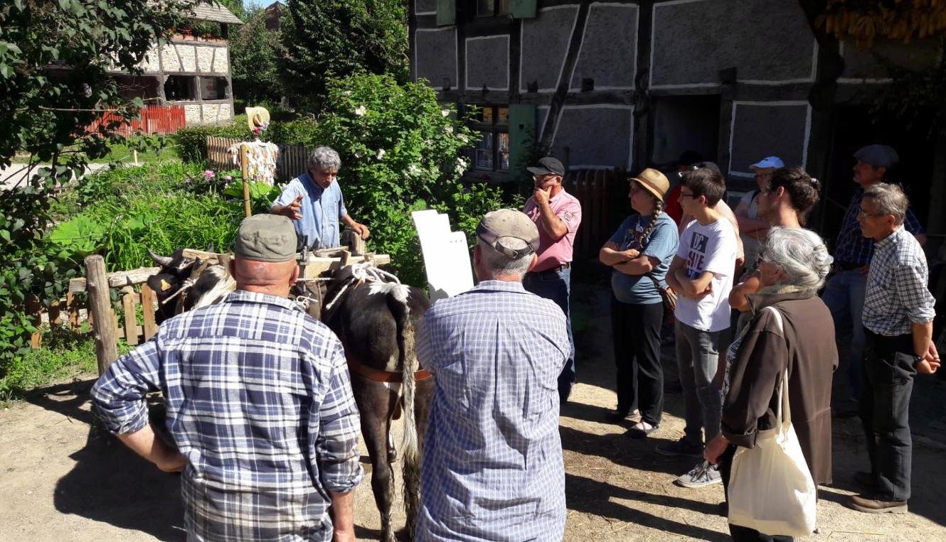 Avec Philippe Kuhlmann, ils ont présenté les projets, d’une part de la création prochaine d’un centre de ressources et de documentation sur la traction bovine à l’écomusée et, d’autre part, l’organisation d’une initiation à la traction bovine en Novembre avec l’aide logistique et l’utilisation des emprises de l’écomusée.