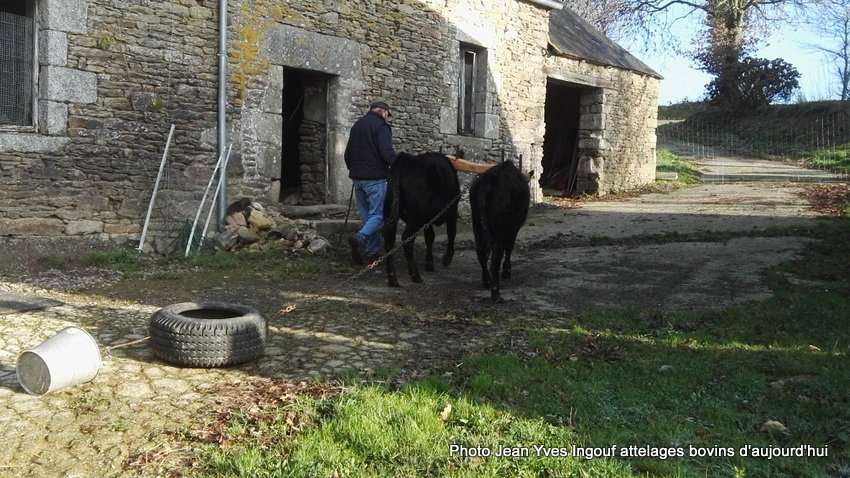 Jean-Yves Ingouf de Plouguenast dresse actuellement deux mâles Canadiens. Il les joins au joug de garrot et ce sont de bons élèves.