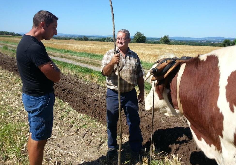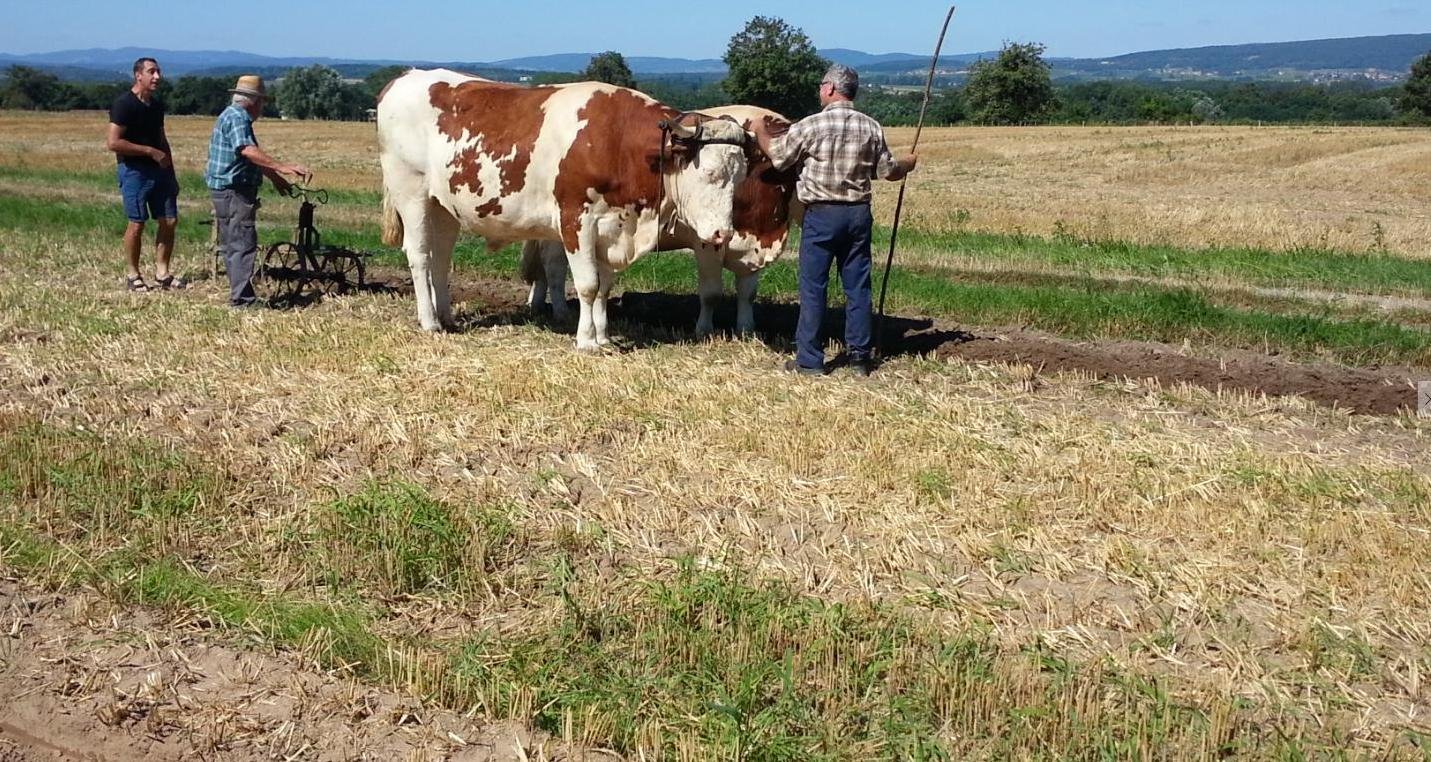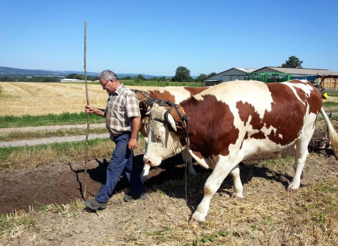 Revenons un peu en arrière dans notre chronologie pour évoquer un grand acteur de la traction bovine – l’Écomusée d’Alsace. En pleine crise d’existence de l’Écomusée en 2006-2007, François Kiesler, chargé du programme de l’agriculture, et le bouvier Philippe Kuhlmann ont malgré tout accueilli la rencontre des Ethnozootechnie Bouviers d’Alsace (Simon, 2007), à laquelle ont participé des spécialistes de la traction chevaline comme Jean-Louis Cannelle du Centre Européen de Ressources et de Recherches en Traction animale (CERRTA) ou Pit Schlechter de la Fédération Européenne du Cheval de Trait pour la promotion de son Utilisation (FECTU). Ces rencontres se sont poursuivies chaque année depuis et ont vite attiré l’attention de participants étrangers – luxembourgeois, belges, britanniques, suisses, et surtout, bon voisinage oblige, de nombreux allemands. Depuis le début, Philippe Kuhlmann a littéralement fait le pont entre Français et Allemands à travers des réunions dans les deux pays, aujourd’hui renforcées par l’accueil de stages de formation de bouviers deux fois par an au sein de l’Ecomusée d’Alsace. Certes, ce n’est pas le seul exemple de formations – le CFPPA de Montmorillon (Coti, 2014), tout comme des privés comme Olivier Courthiade ou Emmanuel Fleurentdidier, en ont proposées – mais c’est sans doute celle avec l’histoire la plus riche et le rayonnement le plus durable.