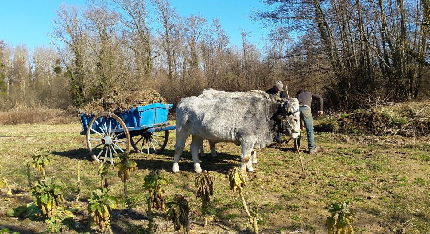 Il y a vingt ans, Nicole Bochet et moi-même avons évoqué l’idée de faire comme les Japonais et leurs imitateurs ailleurs dans le monde : obtenir un statut de « trésors nationaux vivants » pour les experts bouviers. C’était sans doute peu réaliste, mais nous avons posé la question à Olivier Courthiade, aussi Sociétaire, il y a quelques années. Il nous a répondu de sa façon habituelle : « Je m’en fiche de trésors, il faut nous soutenir pour amener plus de travail, c’est ça qui compte, le travail ». Depuis plus de vingt ans, j’ai le privilège de connaître et d’apprendre de gens qui utilisent les bovins dans le travail des musées, pour les loisirs et sur des exploitations où les bœufs ou les vaches sont la principale force motrice. J’ai pu constater le nombre de jeunes qui souhaitent s’installer en agriculture « bio » à économie circulaire, et qui ont pris conscience du plaisir qui peut exister entre un être humain et une bête de travail. À l’instar du programme agricole de l’Écomusée d’Alsace, ils cherchent comment « atteler » la sagesse et la diversité de pratiques traditionnelles aux besoins réels de production (Griffin-Kremer, 2020). Aujourd’hui, suite à une crise qui a renforcé l’intérêt pour les circuits courts de l’approvisionnement alimentaire, je pense qu’il est temps de revoir la copie et d’explorer plus sérieusement le potentiel de l’utilisation de la traction bovine, entre autres.