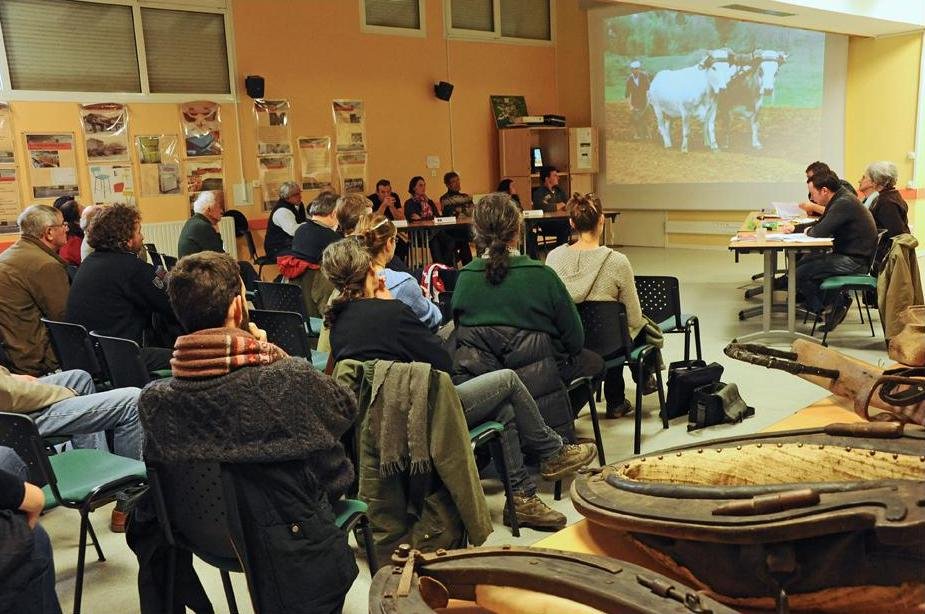 En 1997, la rencontre à l’EHESS (École des Hautes Études en Sciences Sociales) organisée par Nicole Bochet, Jean-Maurice Duplan et François Sigaut, a donné lieu à la publication du n° 60 de la revue de la Société d’Ethnozootechnie « Les bœufs au travail », tout particulièrement dédié à François Juston, auteur en 1994 du manuel « Quand la corne arrachait tout ». Cet événement fut accueilli avec un tel enthousiasme qu’il a fallu en prévoir un « bis » à la Bergerie Nationale, cette fois organisé par Germain Dalin dans le cadre du Festival Animalier International de Rambouillet (F.A.I.R.) (Dalin, 1999). Olivier Courthiade, muletier, bouvier, responsable de maintes actions pour la reconnaissance des races de chevaux comme le Merens, assista aux deux rencontres. A Rambouillet, l’expert en matière d’attelage au Morvan, Philippe Berte-Langereau, a apporté une partie de sa collection de jougs. Outre ses publications (Berte-Langereau, 1996 ; 2000), il continue aujourd’hui encore à œuvrer pour la reconnaissance du travail avec les bovins. Avec Michel Nioulou, inventeur du blog pour l’attelage bovin, il propose de coordonner une enquête qui permettrait une vue synthétique de la diversité des attelages sur le territoire français métropolitain et d’outre-mer, à l’instar de celle sur le Portugal faite par F. Galhano et de B. Pereira (Berte-Langereau Enquête).